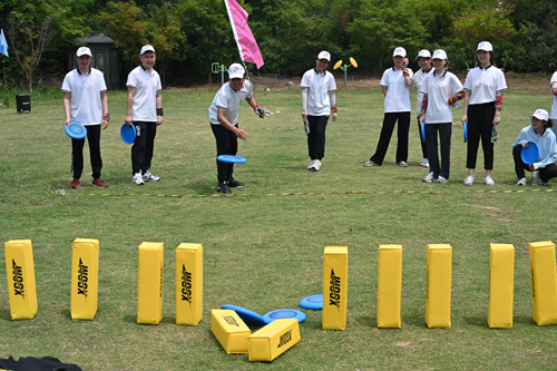 极限飞盘、芬兰撞柱两个考验手眼协调能力和团队协作能力的项目,将活动推向高潮,三支队伍在队长的带领下进行了激烈的体力、智力大比拼,经过2小时的PK,最终决出高下。